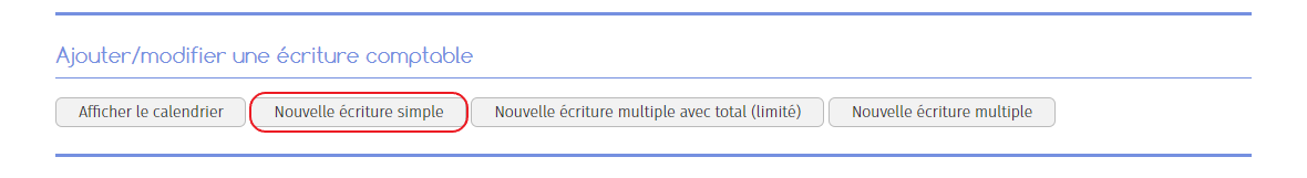 Cliquez sur le bouton « Nouvelle écriture simple ». Les champs vous permettant d’entrer une nouvelle écriture apparaitront en dessous.