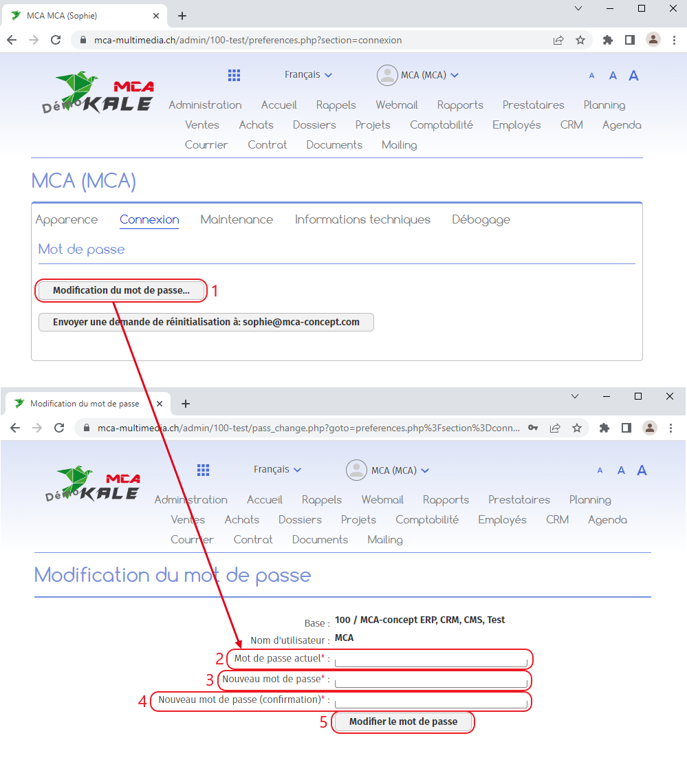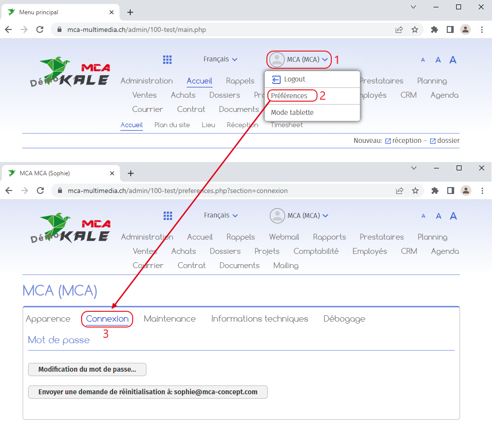 1.   Modifier son mot de passe